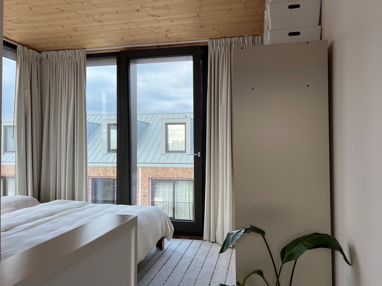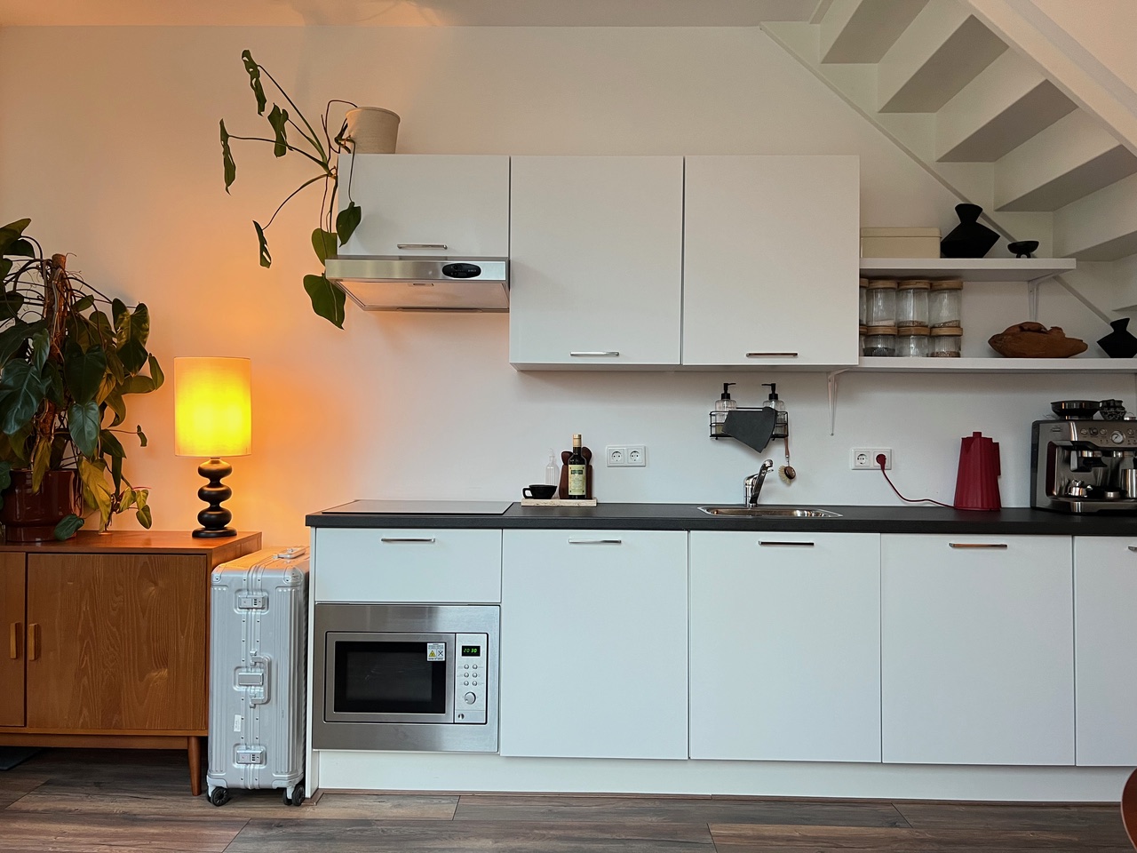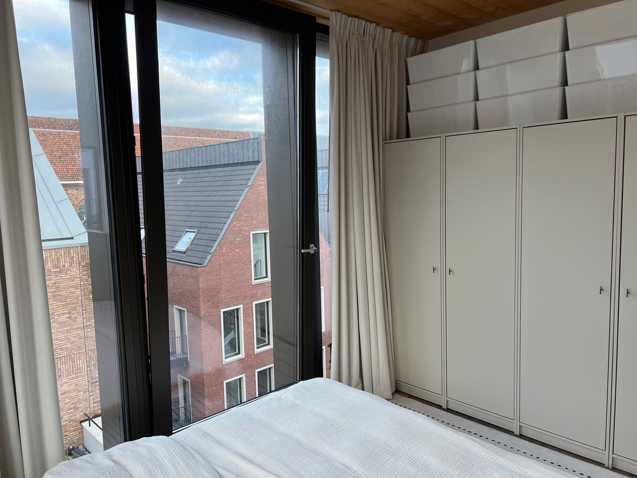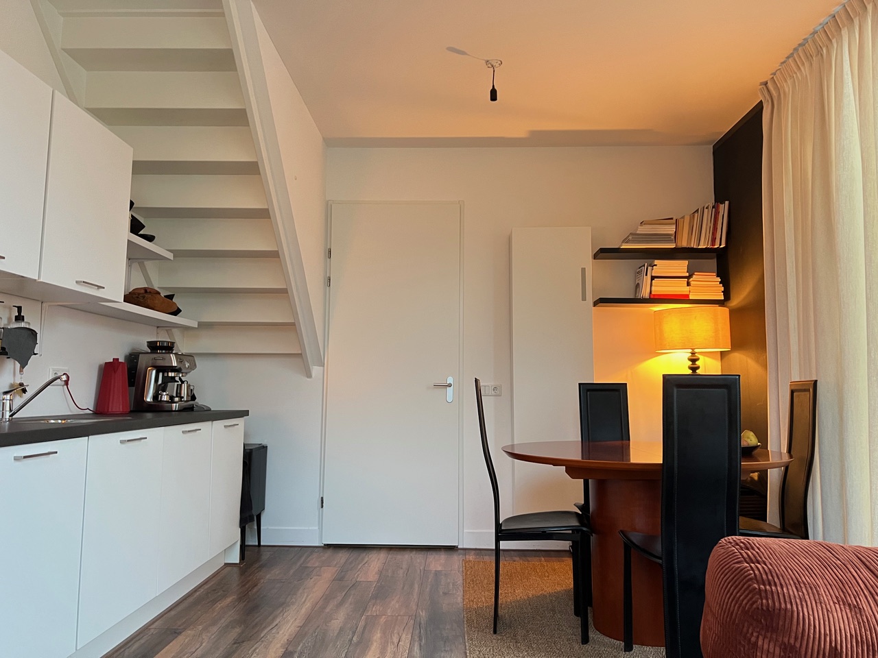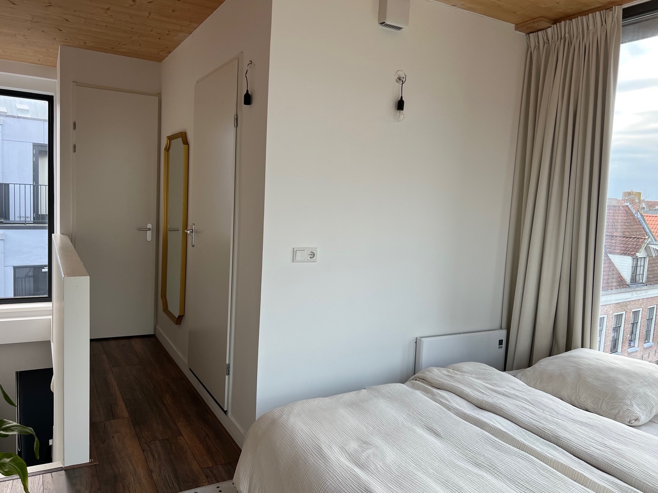 Bij binnenkomst van het appartement kom je terecht in de hal, vanwaar alle ruimtes te bereiken zijn. De woonkamer heeft rondom mooie grote ramen, en een open keuken. De keuken is voorzien van alle hedendaagse luxe, zoals een inductie kookplaat, combi-oven, koel-/vriescombinatie en vaatwasser. Beneden bevindt zich ook een separaat toilet. Via de hal kun je met de trap omhoog naar de tweede verdieping. Via de trap kom je direct in de slaapkamer, vanwaar tevens de badkamer te bereiken is. De badkamer is voorzien van wastafel, inloopdouche en designradiator. Op de tweede verdieping bevindt zich tevens een berging met wasmachineaansluiting.