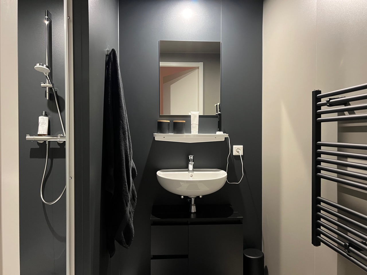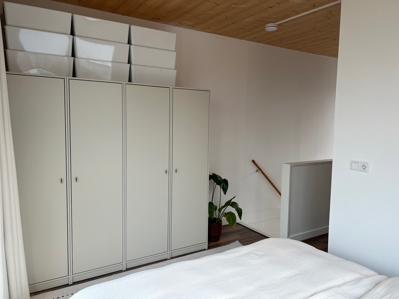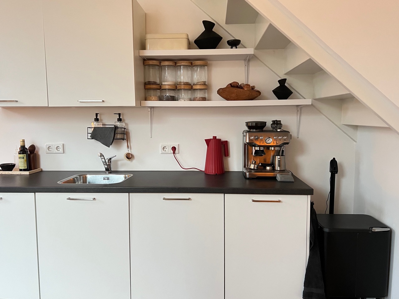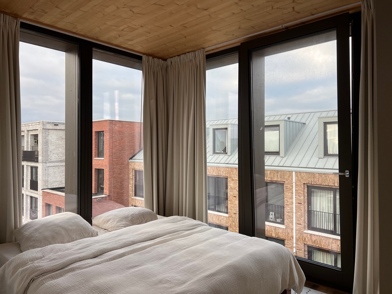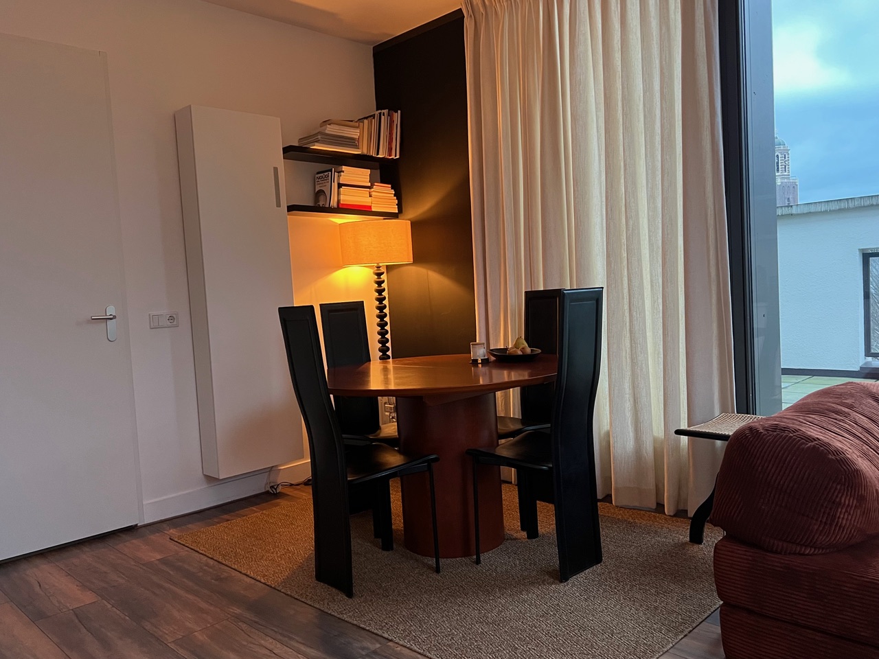 Bij binnenkomst van het appartement kom je terecht in de hal, vanwaar alle ruimtes te bereiken zijn. De woonkamer heeft rondom mooie grote ramen, en een open keuken. De keuken is voorzien van alle hedendaagse luxe, zoals een inductie kookplaat, combi-oven, koel-/vriescombinatie en vaatwasser. Beneden bevindt zich ook een separaat toilet. Via de hal kun je met de trap omhoog naar de tweede verdieping. Via de trap kom je direct in de slaapkamer, vanwaar tevens de badkamer te bereiken is. De badkamer is voorzien van wastafel, inloopdouche en designradiator. Op de tweede verdieping bevindt zich tevens een berging met wasmachineaansluiting.