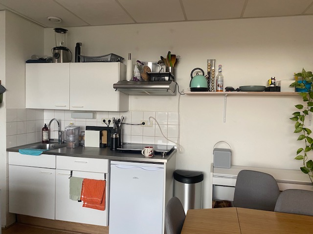 De studio heeft een woon-/slaapkamer met open keuken voorzien van een losstaande 2-pits inductiekookplaat, een losstaande koelkast (met klein vriesvak) en een boiler voor warm water. De badkamer beschikt over een douche, toilet en wastafel.