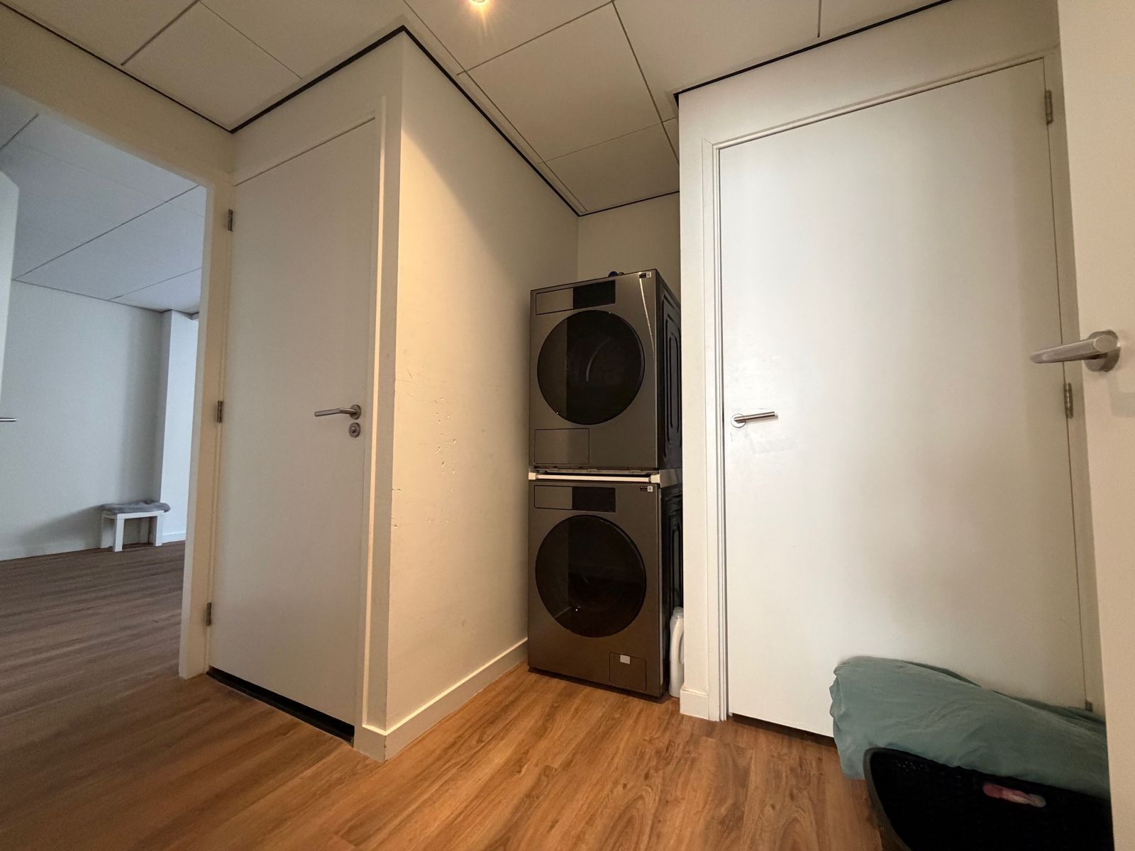 Via de woonkamer bereik je een extra kamer die kan worden ingericht als kantoorruimte of als slaapkamer. Via de hal, waar zich tevens de wasmachineaansluiting bevindt, heb je toegang tot de badkamer. De badkamer is voorzien van een inloopdouche, wastafelmeubel met twee ruime lades en een spiegel met verlichting.