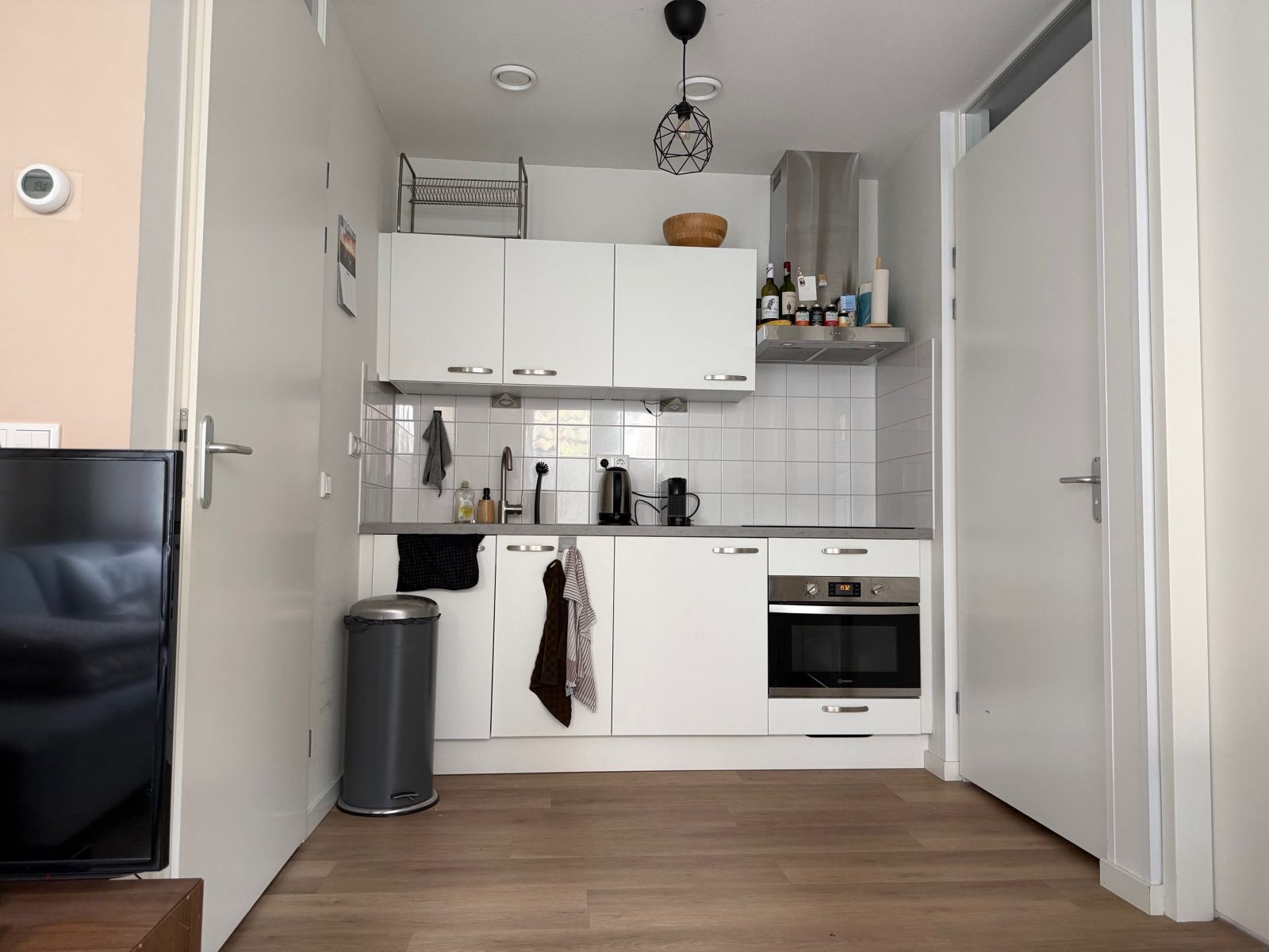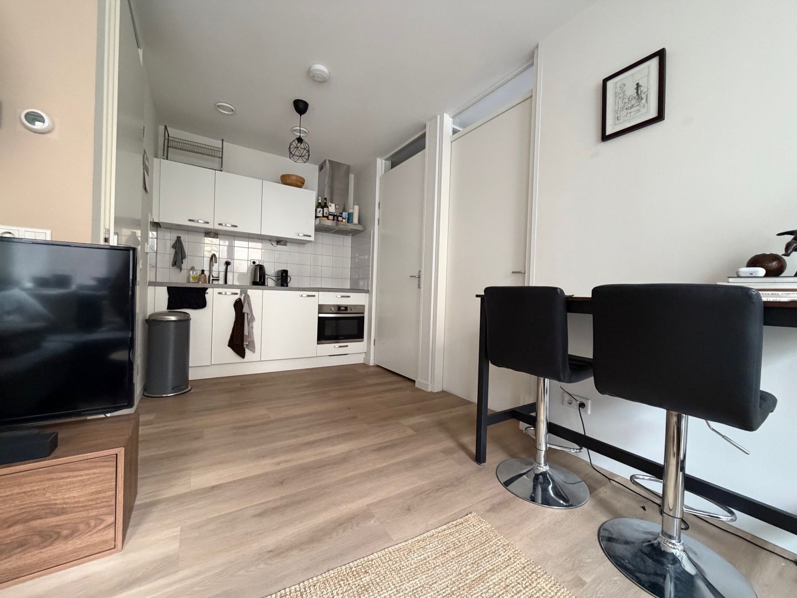 Het appartement is gelegen op de tweede verdieping en heeft een praktische indeling. Via de hal bereik je de lichte woonkamer met open keuken. De moderne keuken is volledig uitgerust met een koelkast, afzuigkap, inductiekookplaat en combi-oven.