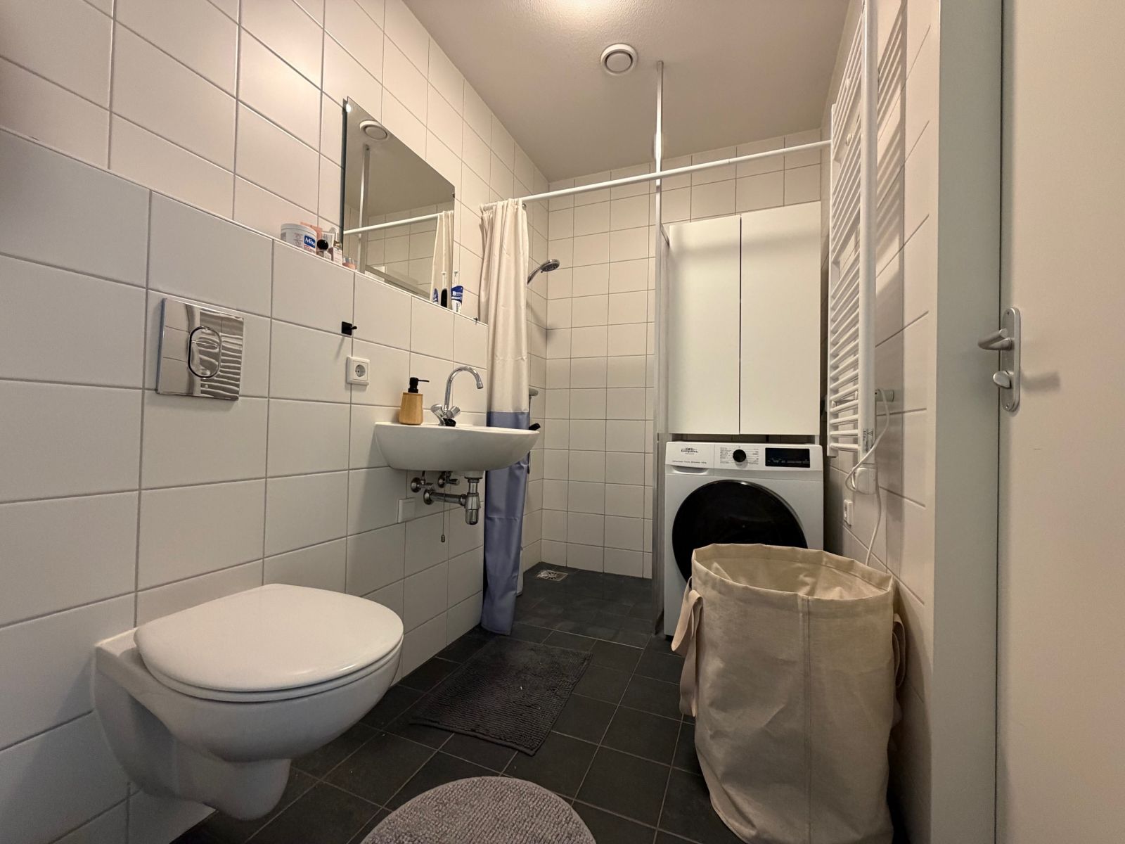 Vanuit de woonkamer heb je toegang tot de slaapkamer en de nette badkamer. De badkamer is voorzien van een inloopdouche, toilet, wastafel, handdoekradiator en een aansluiting voor de wasmachine.