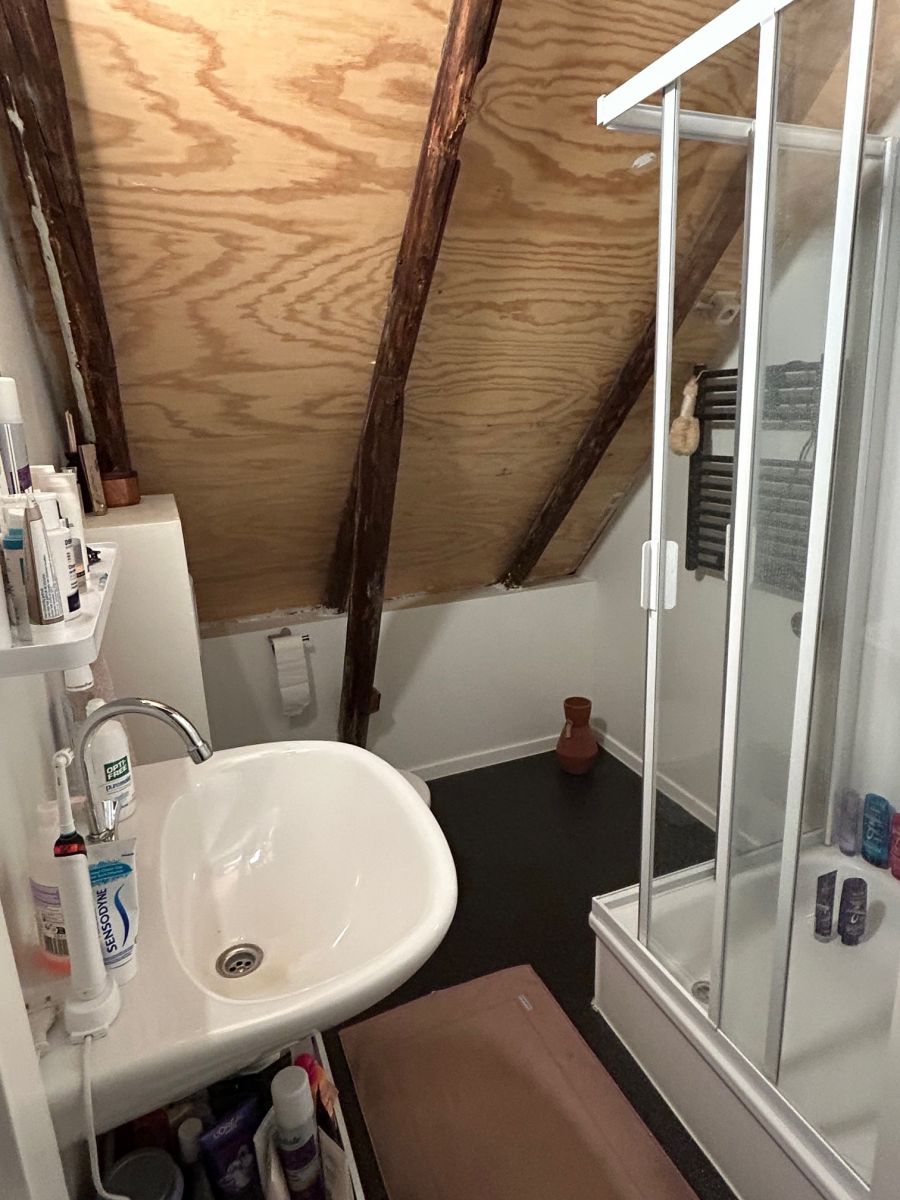 De studio bevindt zich op de tweede etage aan de achterzijde van het pand. De woning beschikt over een keuken, dat voorzien is van een koel-vriescombinatie, kookplaat en een afzuigkap. In de badkamer is een douchecabine, wastafel en toilet te vinden. Op de tweede etage van het pand bevindt zich een wasmachine, waar de bewoners gebruik van kunnen maken.