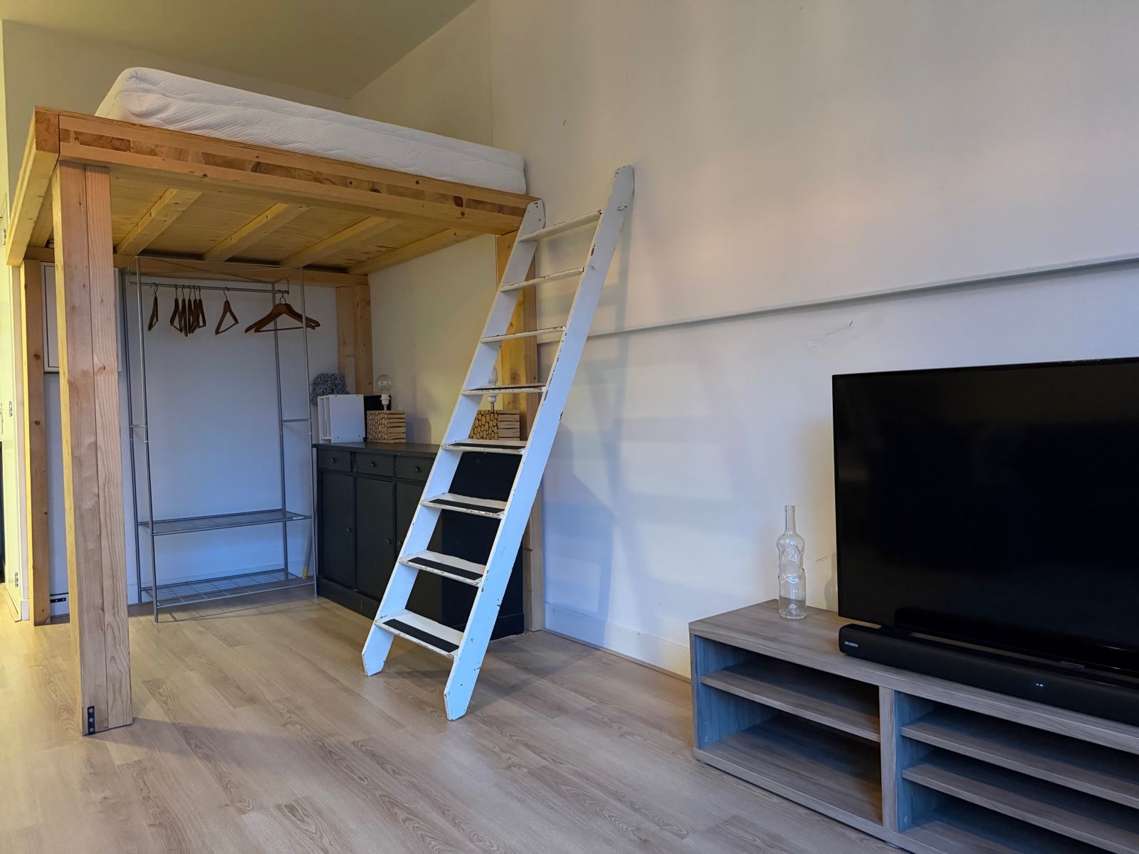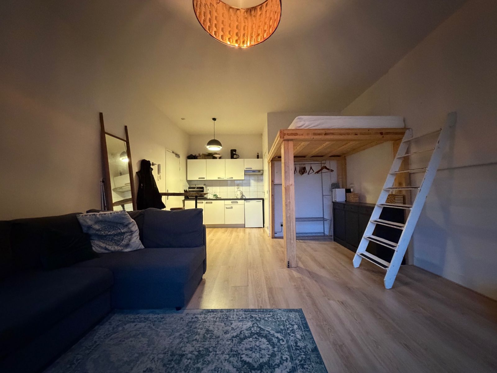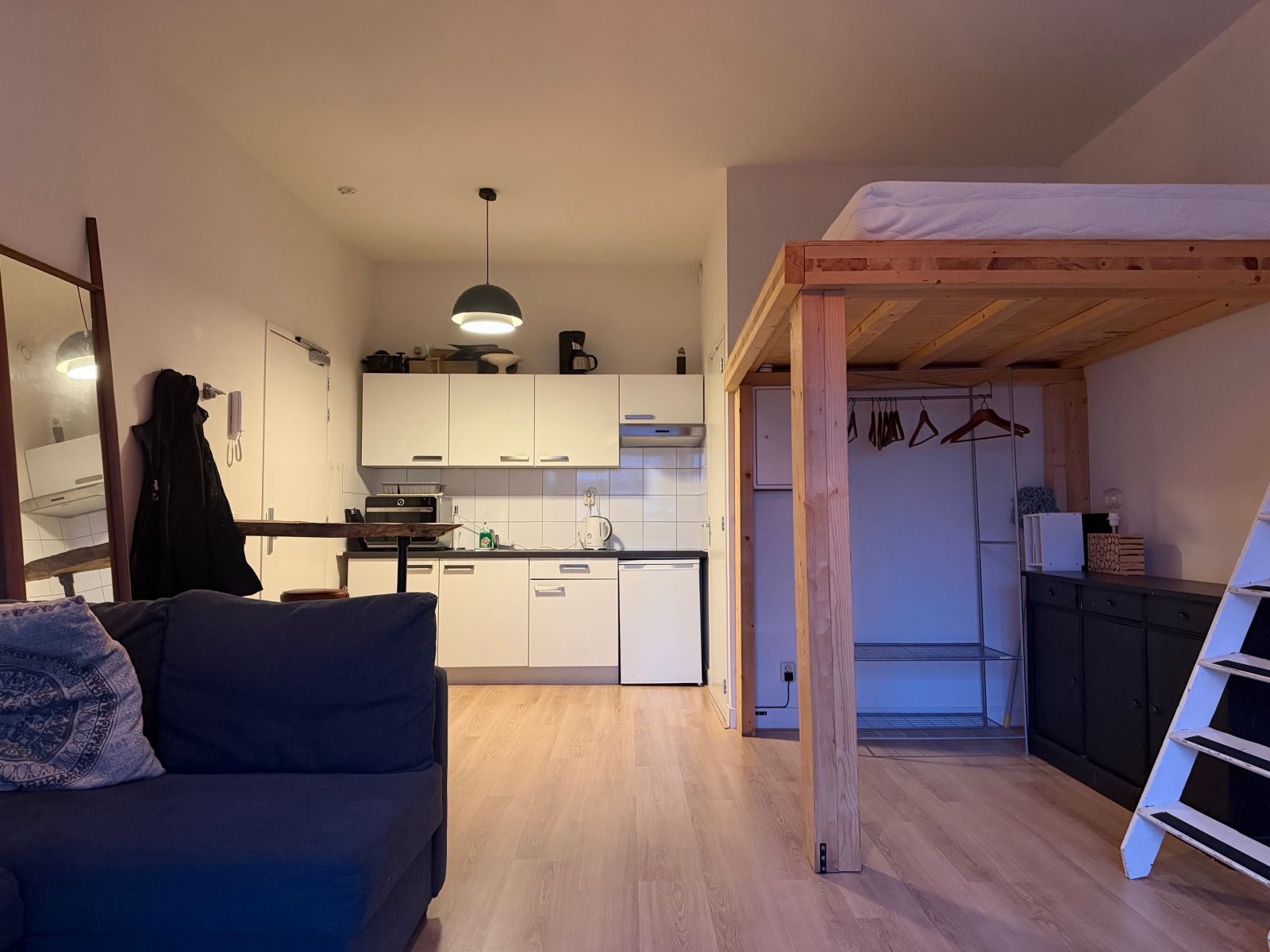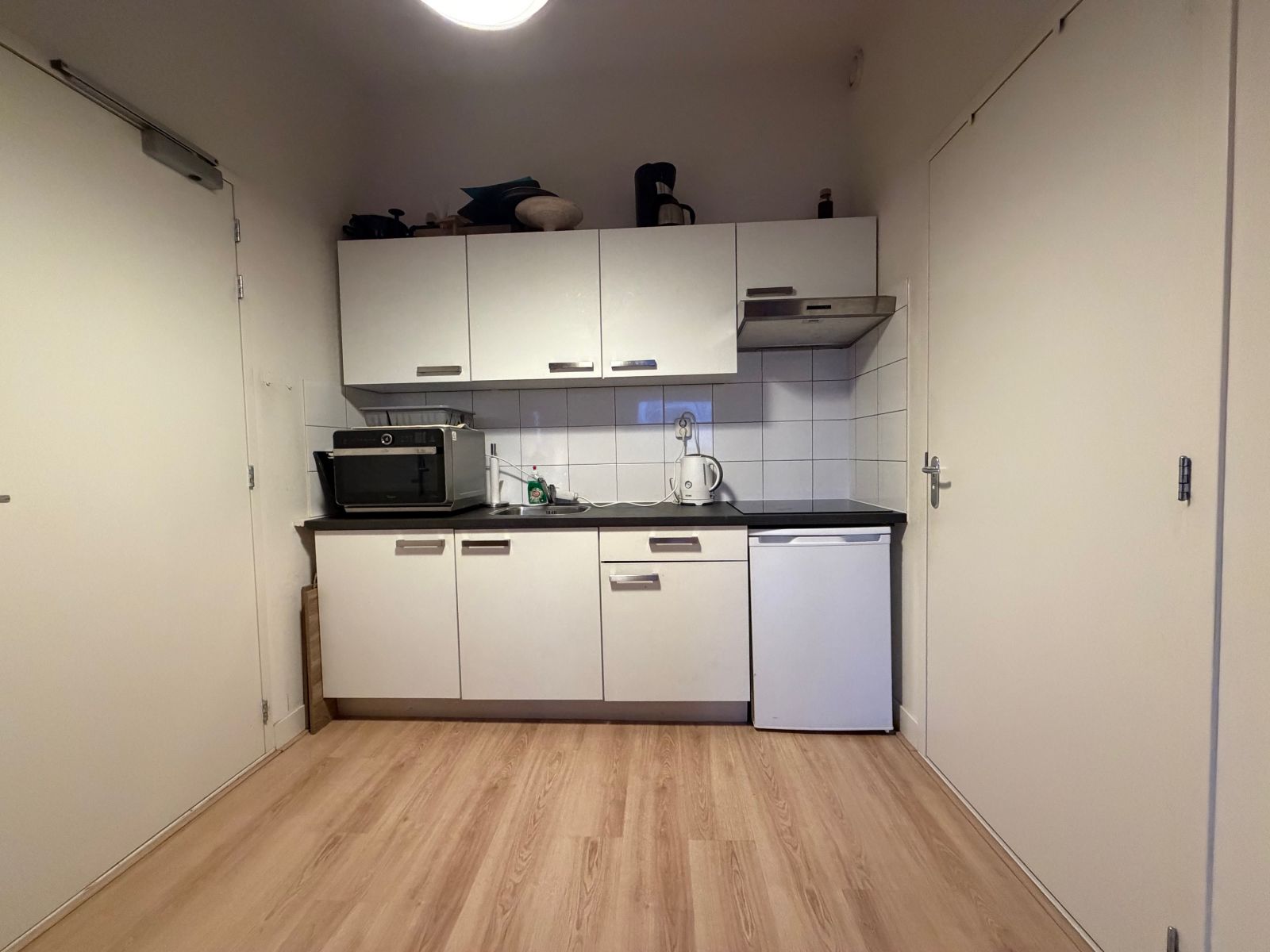 De studio beschikt over een eigen keuken, voorzien van een koelkast met vriesvak, inductie kookplaat en een afzuigkap.