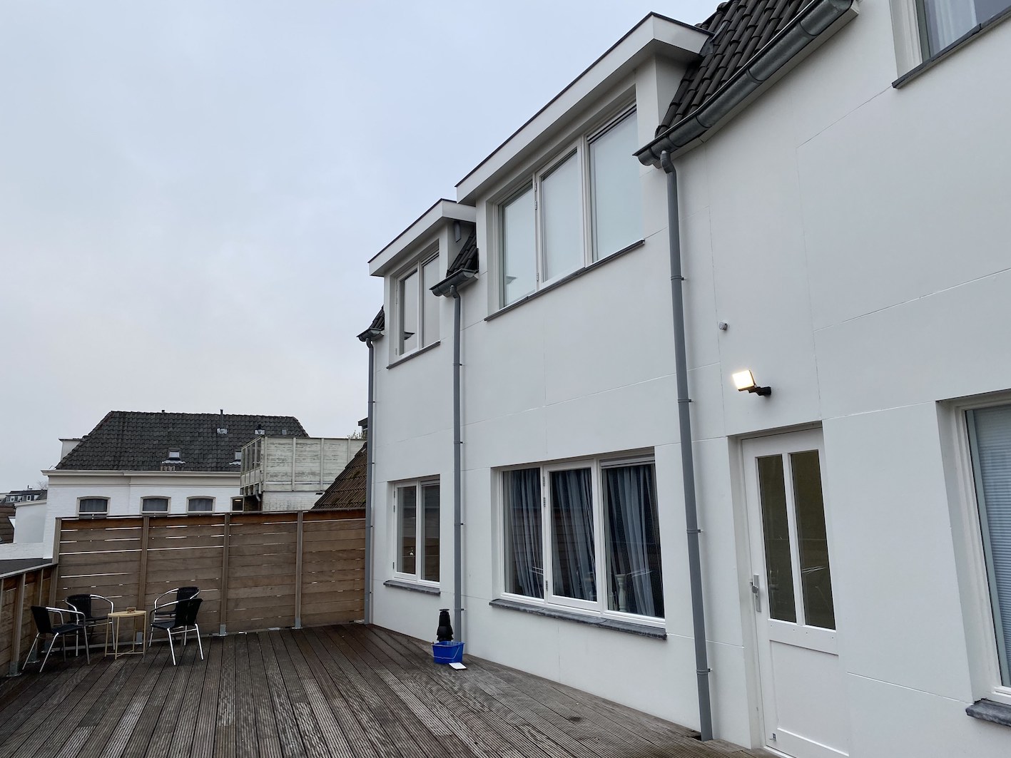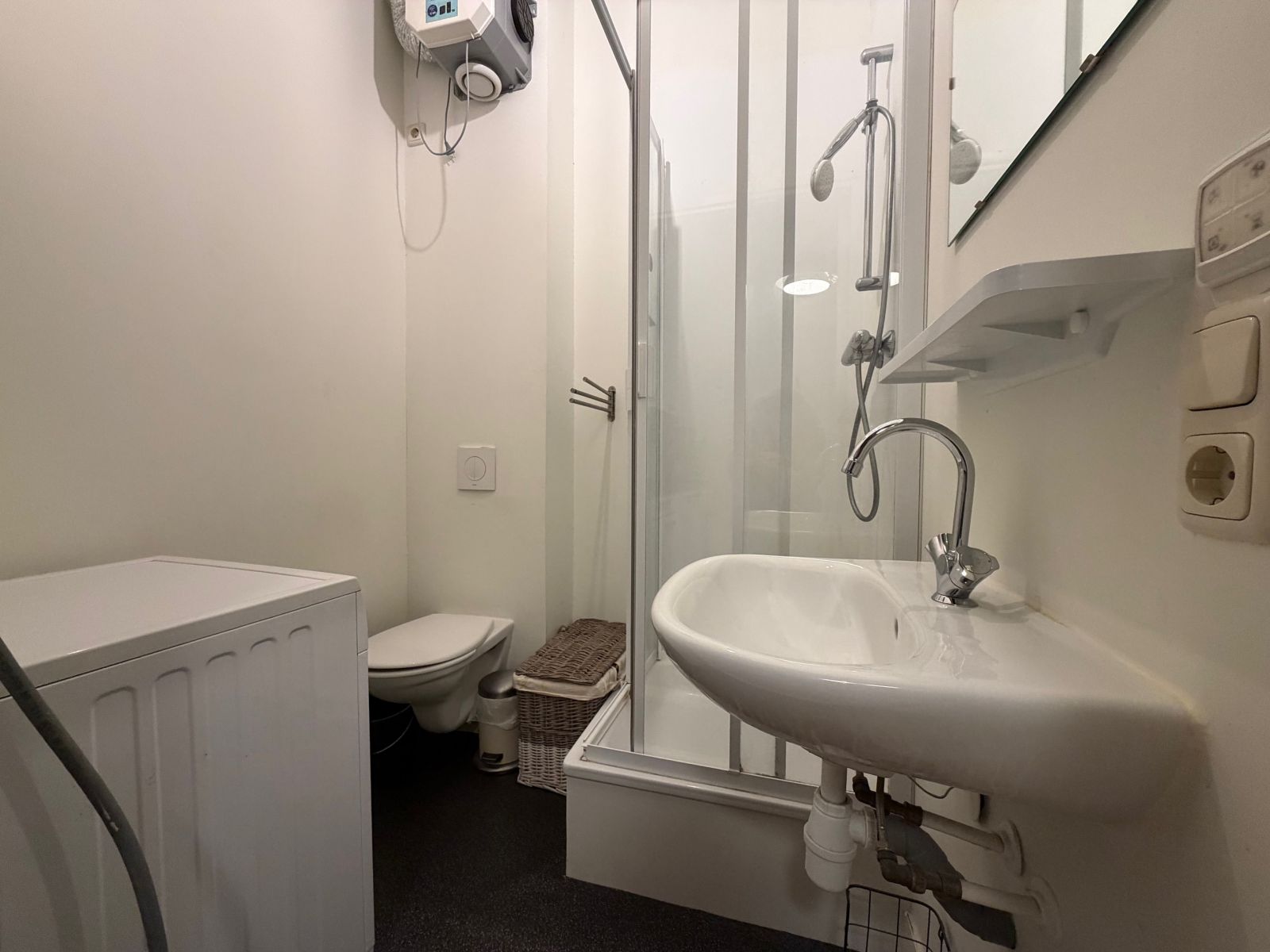 Verder is er een badkamer met designradiator, een douchecabine, wastafel en een toilet. Daar is ook de wasmachineaansluiting te vinden. Er kan gebruik worden gemaakt van een ruim dakterras dat wordt gedeeld met alle bewoners.